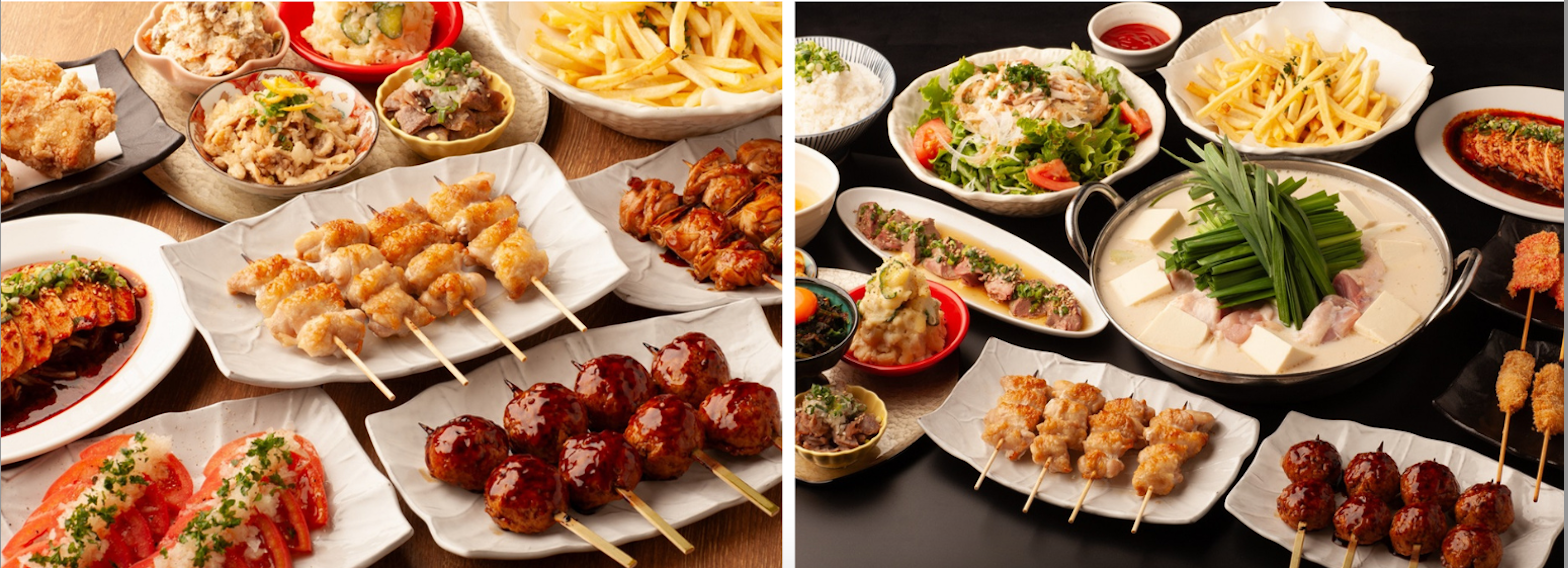 大山どりを使用したこだわりの焼き鳥をはじめとしたバラエティ豊かな変わり串、自慢の手作り料理を、こころゆくまでお楽しみいただけます。