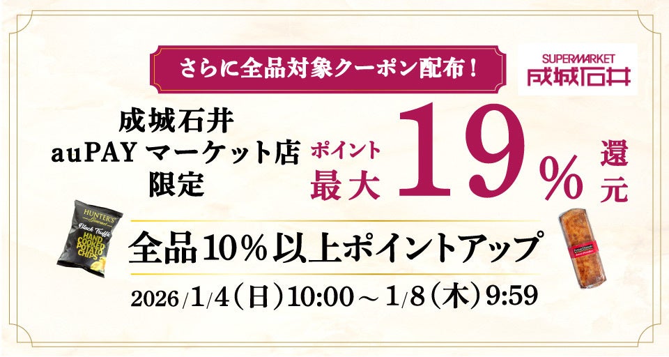 auコマース&ライフは、総合ショッピングサイト「au PAY マーケット」において、2026年1月1日午前10時から新春恒例のおトクなセール「新春ポイント超超祭」を開催します。