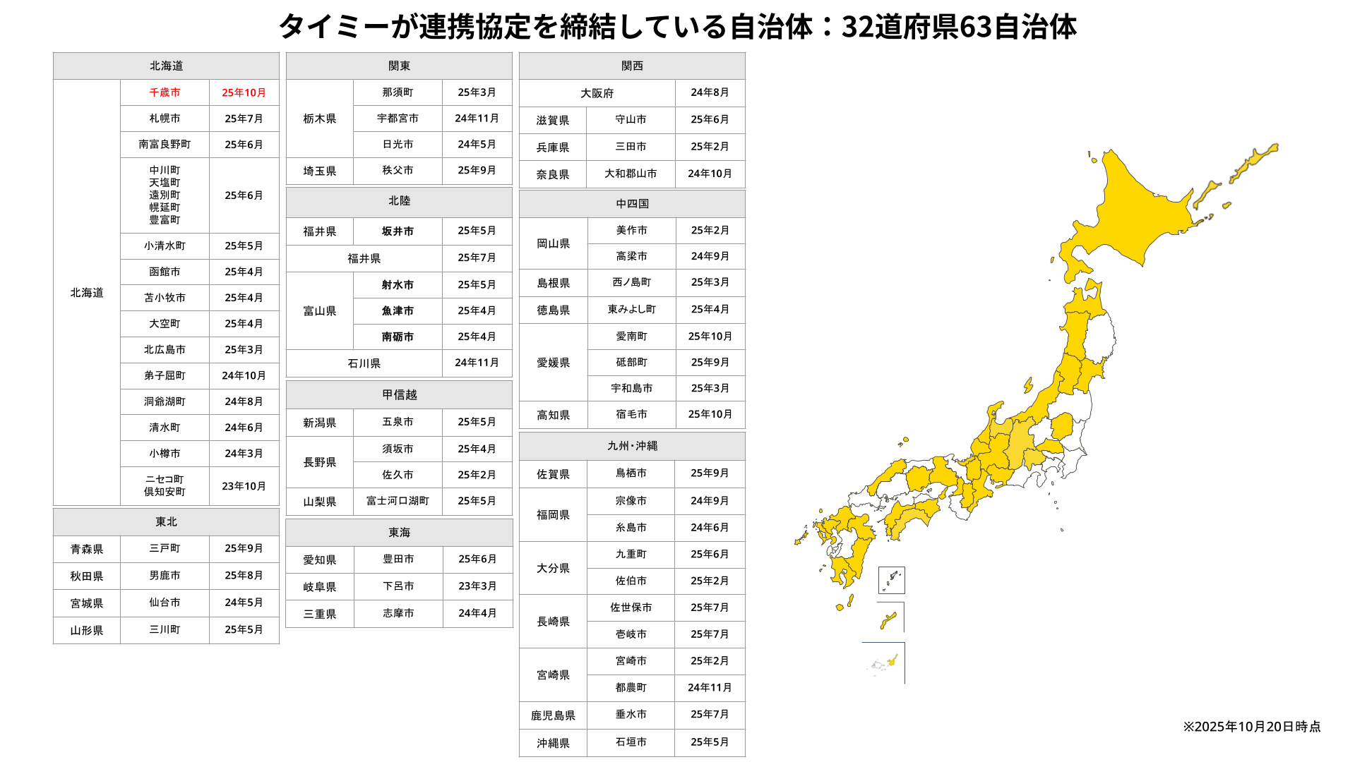 当社はこれまで32道府県・62自治体と連携協定を締結しており、今回の千歳市との連携は32道府県・63自治体目となります(※3)。