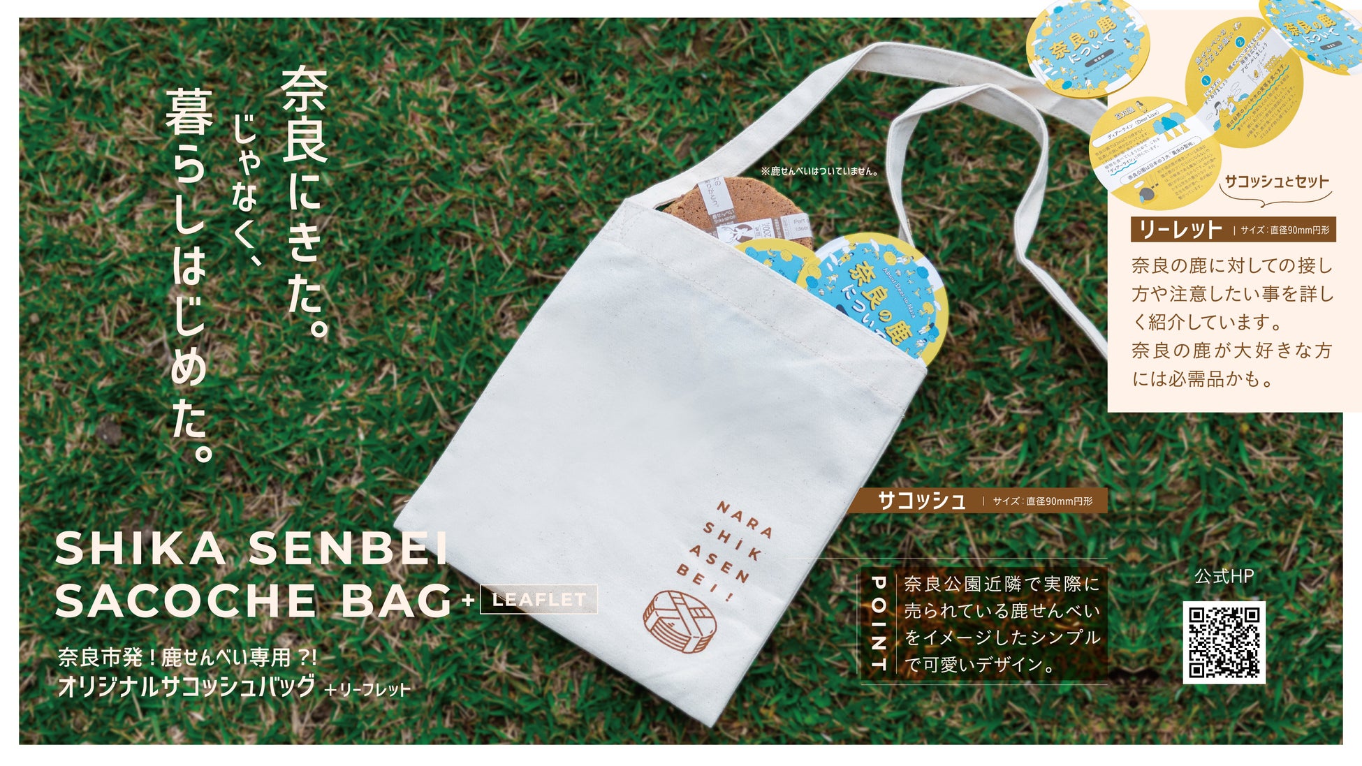 来場者の方には、愛らしい鹿せんべいマークがデザインされた、奈良市オリジナルサコッシュバッグと、鹿せんべいリーフレットをプレゼントします。薄手で軽いため、カバンの中に入れておいたり、小さなお子様が持つのにもピッタリです。