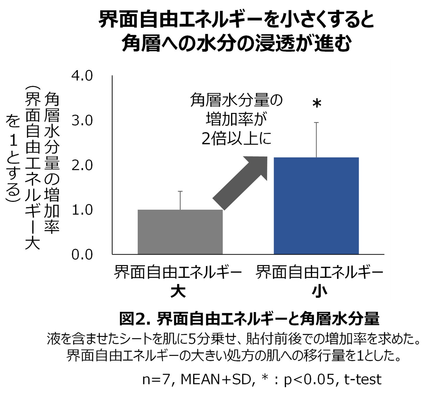 これにより、これまでシートマスクの浸透性を高める主な手段であった液量・密着性に加えて、シートに含ませる液自体の性質を変化させることで、さらに機能を向上させることができることが確認できました。