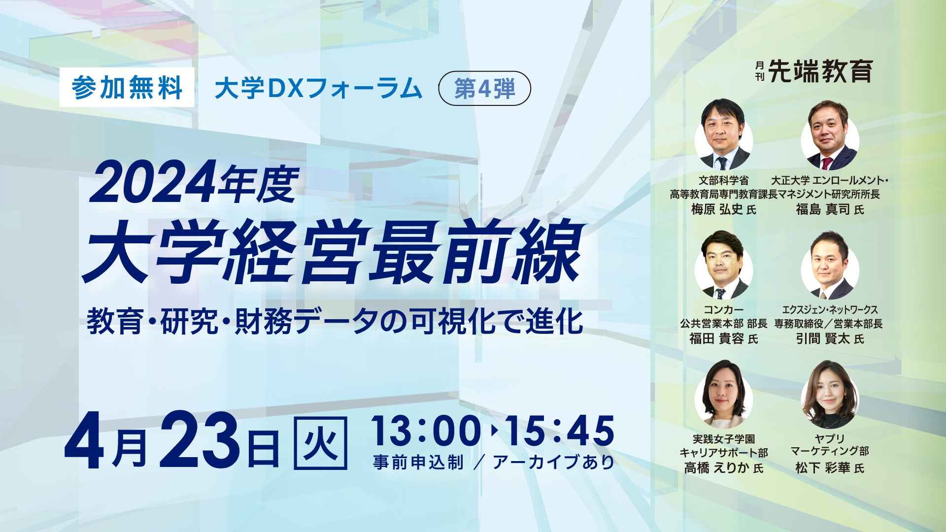 【大学DXフォーラム第4弾】2024年度大学経営最前線 ~教育・研究・財務データの可視化で進化~を4月23日(火)オンライン開催