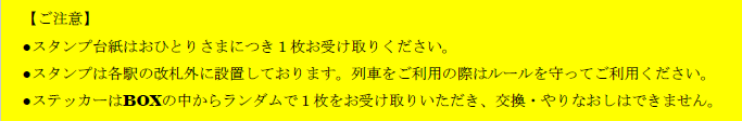 ●スタンプは一部の駅を除き、各駅の改札外に設置してあります。列車をご利用の際はきっぷやご乗車のルール・マナーを守ってご利用ください。