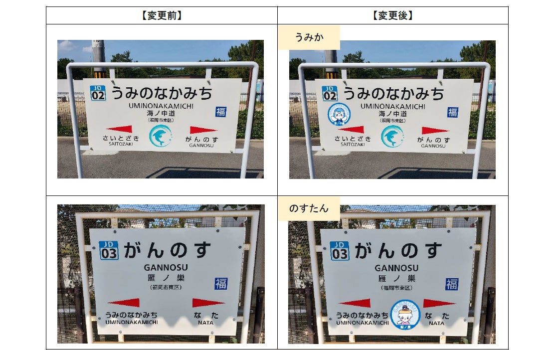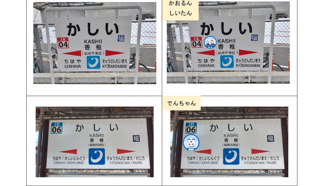 【第1弾】香椎線全駅16駅の駅名標に期間限定でキャラクターが登場!
