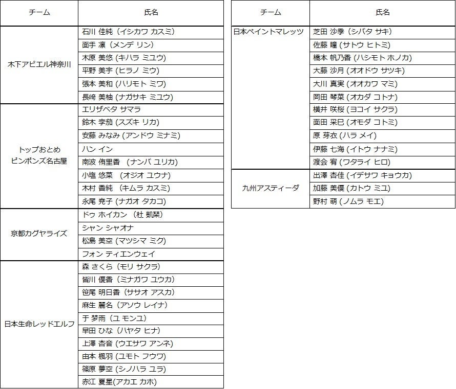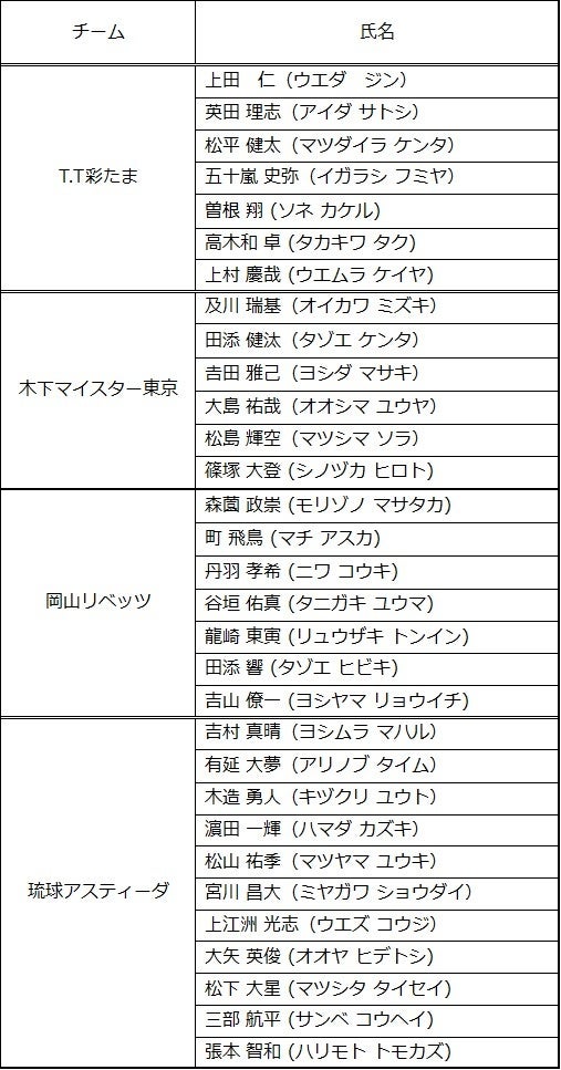 卓球のTリーグ 2022-2023シーズン 登録完了選手(2022年6月27日付)