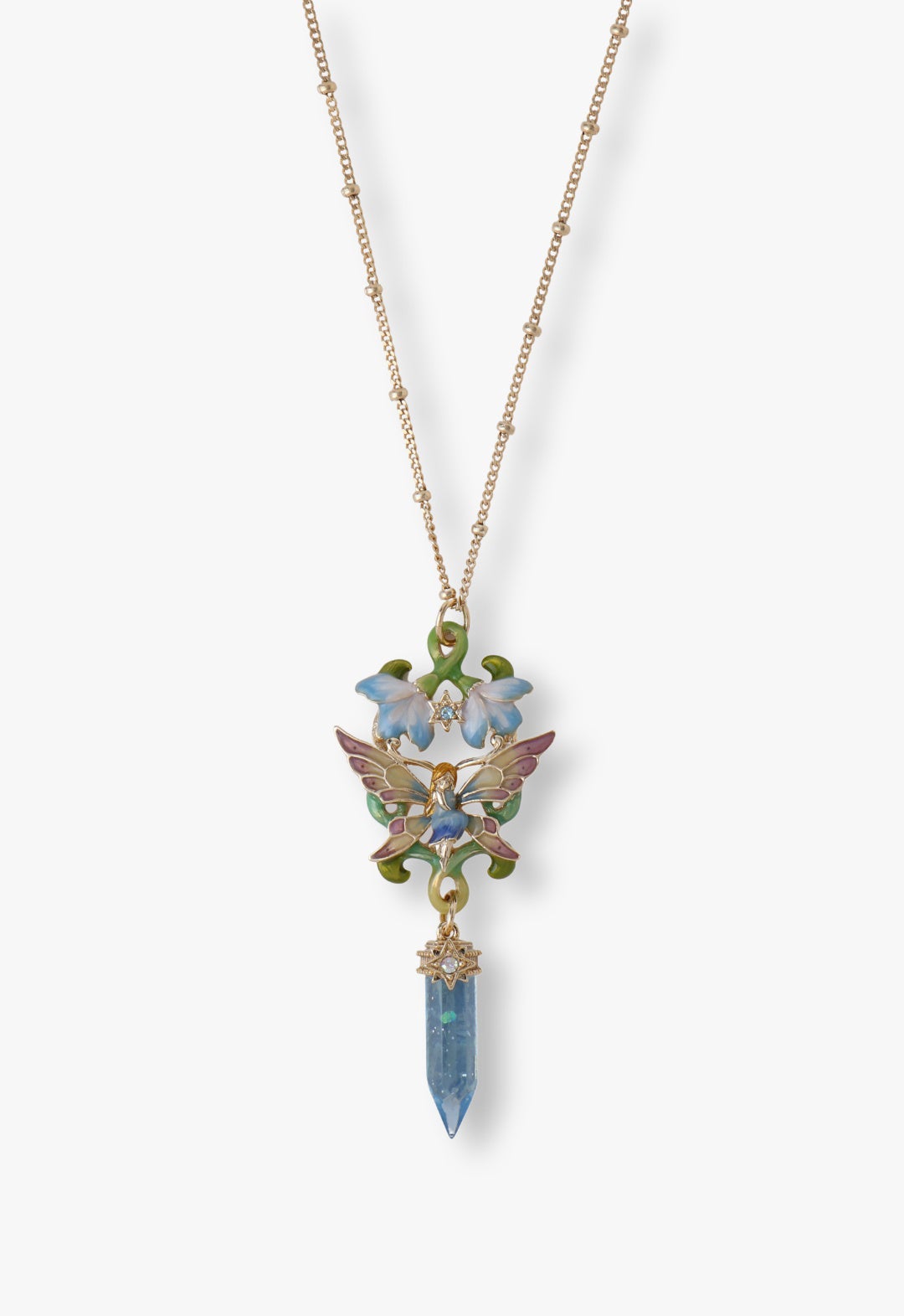 アール・ヌーヴォーを感じさせる植物の優美な曲線や、クリスタルの結晶をイメージした六角柱、月の光に佇む妖精などファンタジックな世界観あふれるANNA SUIらしいコレクションです。