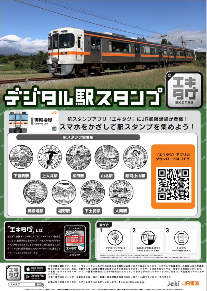 ◎株式会社ジェイアール東日本企画が提供する駅スタンプアプリ「エキタグ」では、2024年9月22日(日)より、JR東海の御殿場線にエキタグがデビューします。