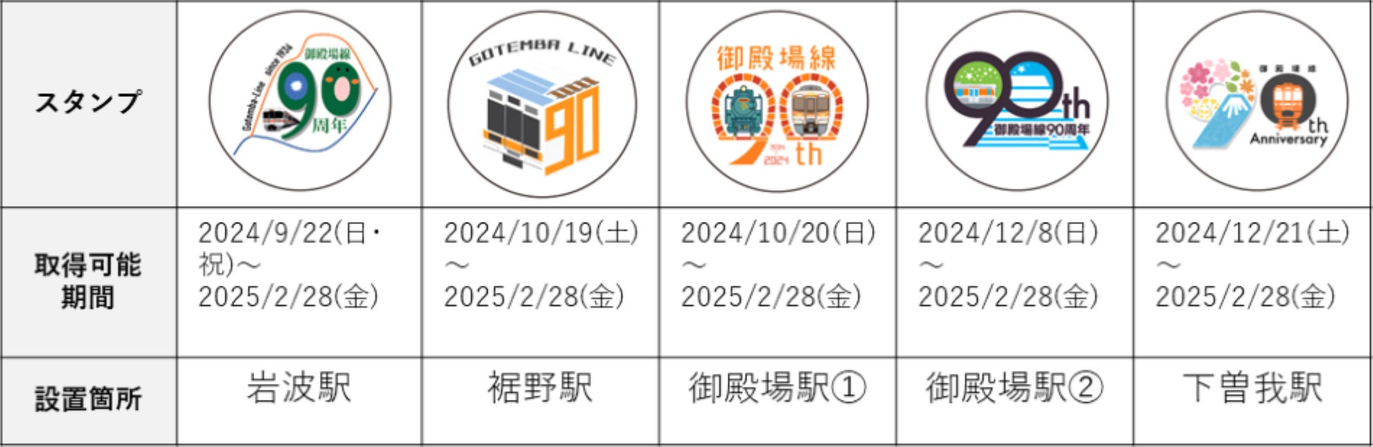 ※駅によってスタンプ取得可能期間が違いますのでご注意くださいませ。