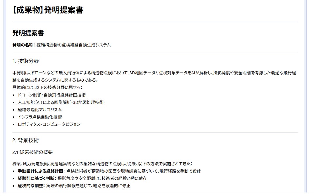 【特許AIエージェント最新事例】点検ドローンの経路生成技術をAIが要素化し、発明整理と特許出願を支援