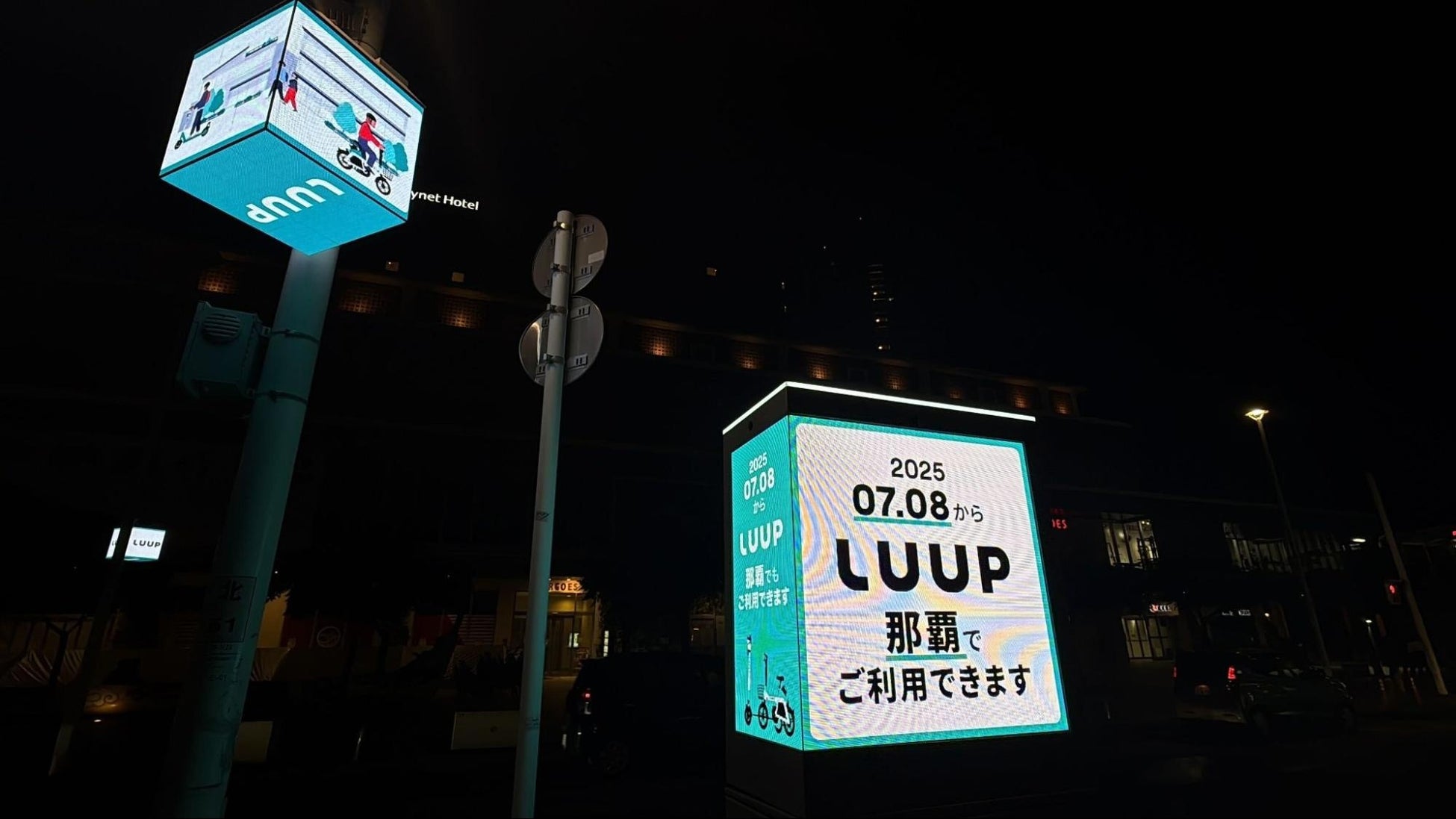 行政機関や民間企業が集まる市内中心部に立地し、通りには約600のお店や事業所が軒を連ねています。デパート、レストラン、サービス、雑貨店やホテル、お土産屋など、地元客も観光客も訪れる多彩な店舗が立ち並び、年間を通じて多くの人々で賑わうエリアです。この度、沖縄県那覇市にて電動キックボードや電動アシスト自転車のシェアリングサービス「LUUP(ループ)」の提供を開始するにあたり、6月23日(月)〜7月20日(日)の期間限定で国際通りストリートビジョンで、LUUPの映像コンテンツが放映されています。