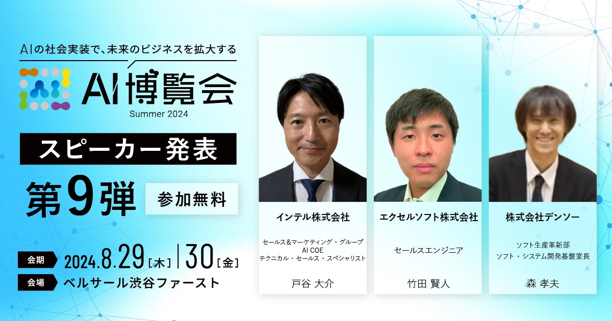 AI博覧会、第9弾スピーカーを発表!インテル 戸谷氏、エクセルソフト 竹田氏、デンソー 森氏が講演!