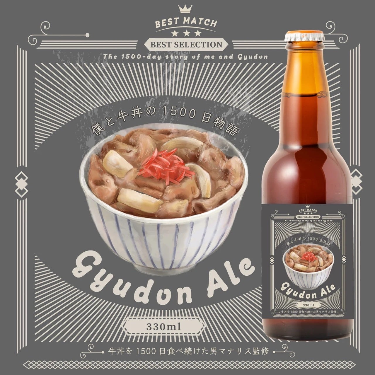 「牛丼を1500日食べ続けている男」として話題のマナリスが、ひょんなことからクランドとコラボをすることに。勢いのままに商品化したのは、なんと「牛丼に合うお酒」。 クラフトビール「Gyudon Ale」×3本セット 、日本酒「Gyudon Sake」 2つの商品のうちどちらか一方を選択できます。
