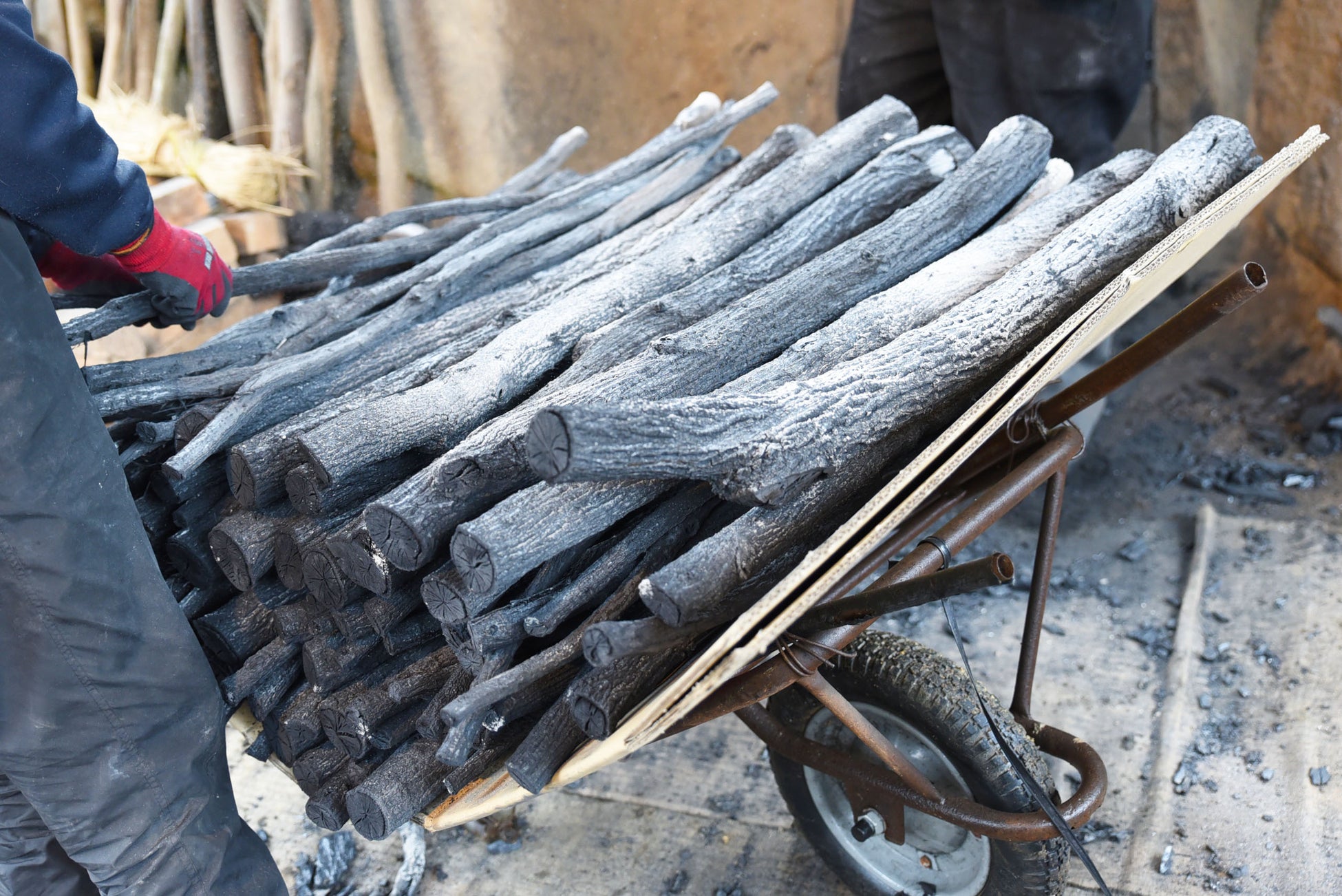 黒川地区で一庫炭(菊炭)の窯出しが始まる / 兵庫県川西市