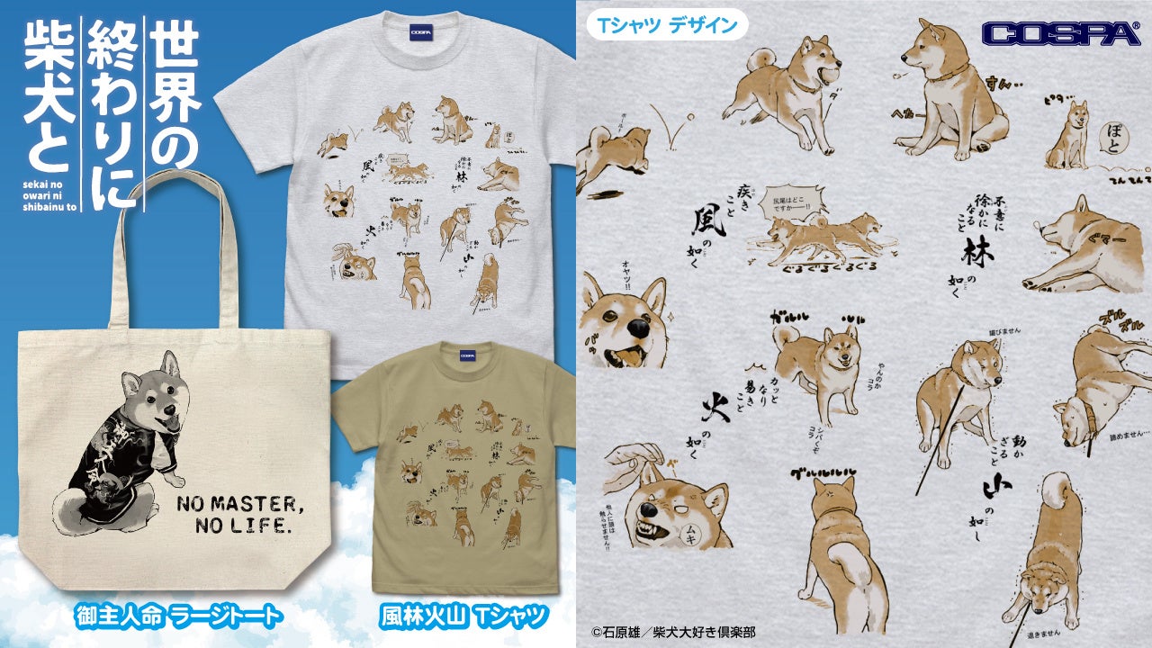 『世界の終わりに柴犬と』ハルさんの「風林火山」Tシャツ、「御主人命」ラージトートが登場!【株式会社コスパ】