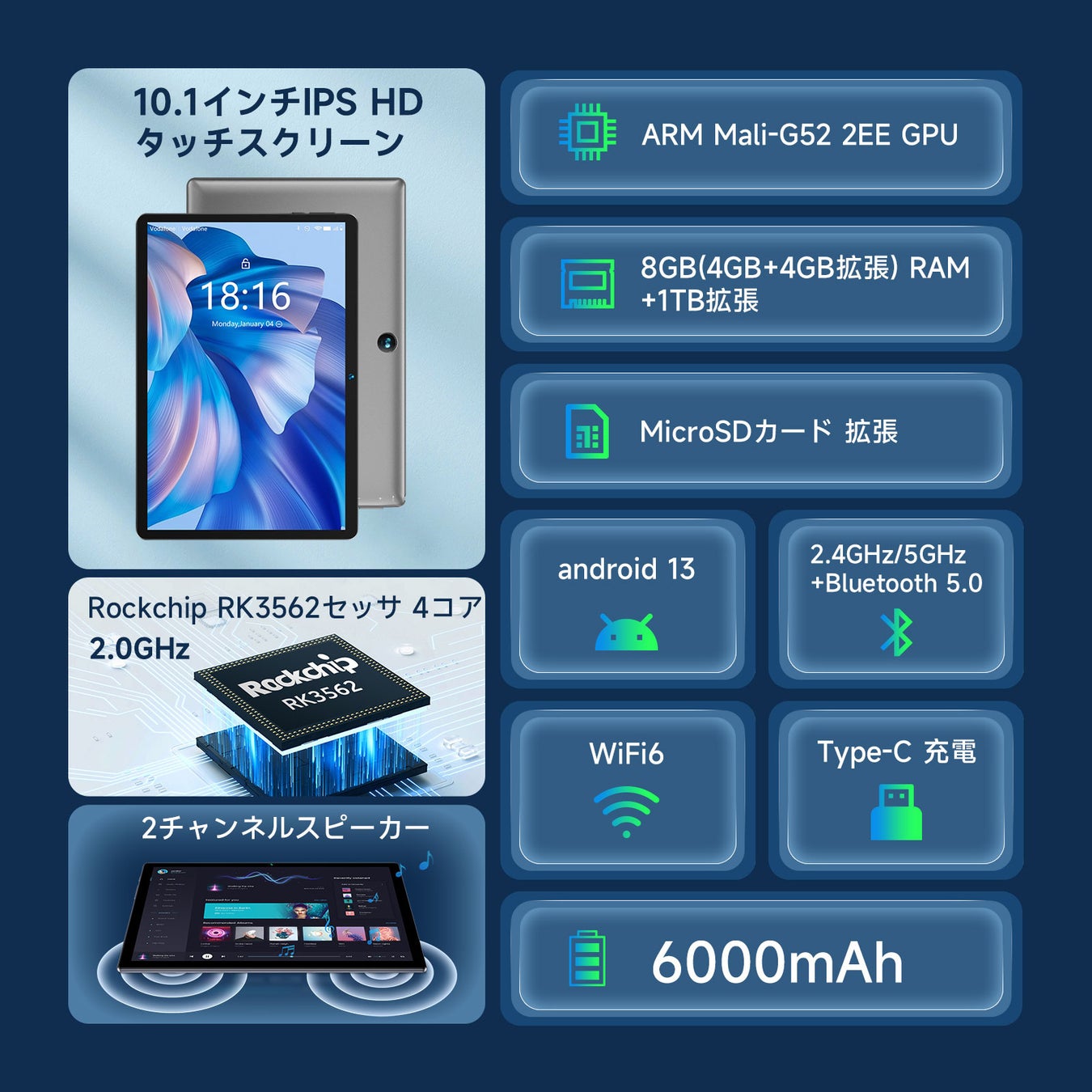 RK3562搭載 / 10.1インチ / Android 13 / 8GB(4GB+4GB仮想)RAM+64GBストレージ /  6000mAh