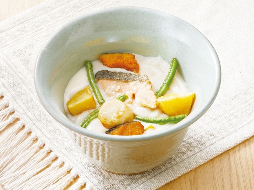 北海道産の野菜とほたてと豆乳のまろやかなあんかけだしで心も体も温まります。