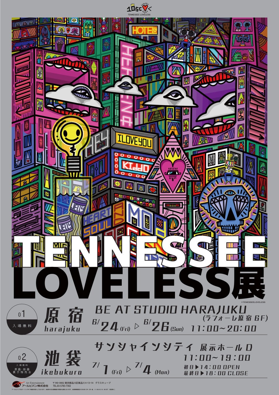 そしてこのたびアミューズ、アールビバン株式会社の共同主催で、世界が注目を寄せるテネシー・ラブレスの日本初となる【TENNESSEE LOVELESS展】の開催が決定いたしました。東京・原宿を皮切りに、日本全国を巡ります。