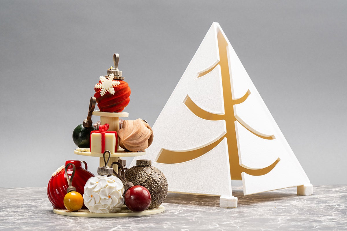 大きなチョコレートのツリーを開けると、中には13種類それぞれ味の違うクリスマスオーナメントケーキが詰まった楽しさあふれるスペシャルケーキ。サプライズにもぴったりなデザインと、味はもちろんパティシエの繊細な技術が堪能できるプレミアムなクリスマスケーキです。チョコレートついーはホワイトとチョコからお選びいただけます