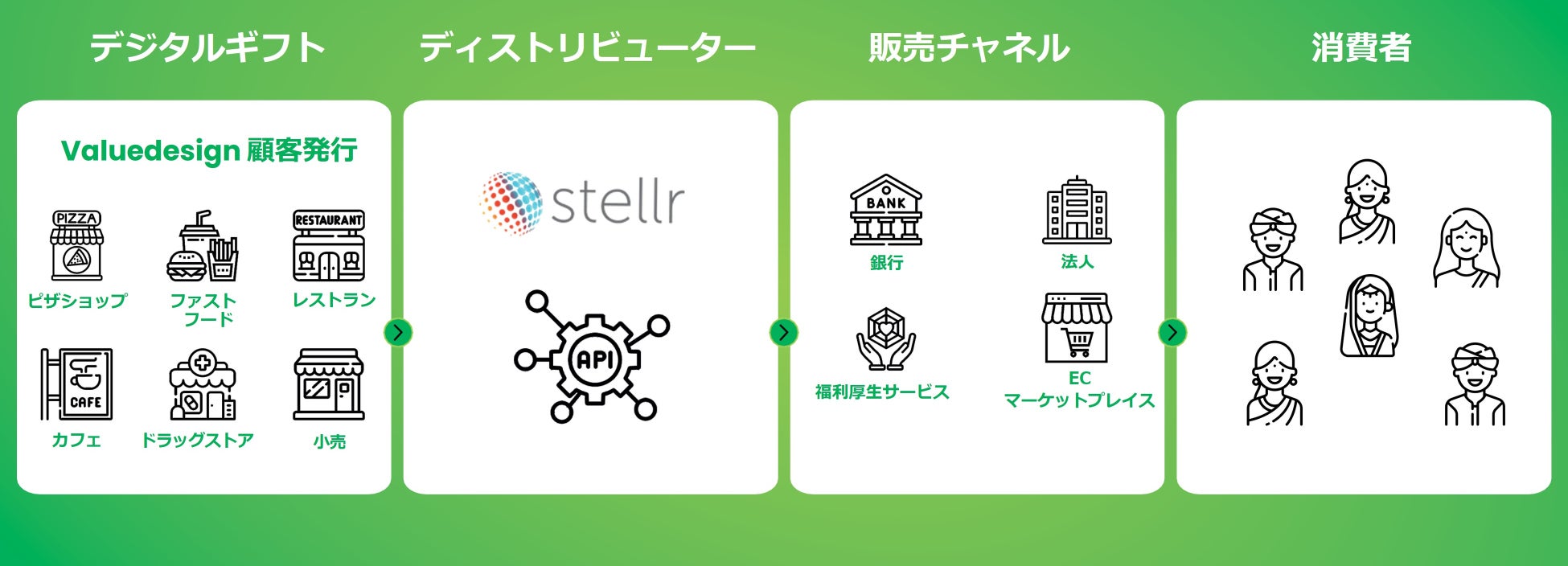 ペイクラウドホールディングス株式会社(東証グロース:4015)の傘下でキャッシュレスサービス事業を展開する株式会社バリューデザイン(本社:東京都中央区、代表取締役社長:林 秀治、以下「バリューデザイン」)の海外子会社の1社である、Valuedesign Services Private Limited(本社:インド ムンバイ)は、インドや南アフリカなどの地域で10,000件以上の実店舗と180のデジタルチャネルへ、ゲームやエンターテインメント、ファストフードをはじめさまざまなカテゴリーのプリペイドカードを展開するStellr(インド グルグラム)と連携したことをお知らせいたします。各社が所有するネットワークを活用し、取り扱うギフトカードを双方向に流通できるようにすることで、消費者に向けた商品ラインナップを強化するとともに、販路拡大を狙います。