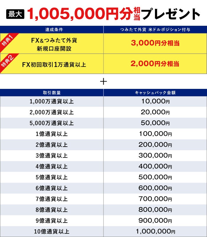 ~新規口座開設と取引条件達成で最大1,005,000円分相当プレゼント~