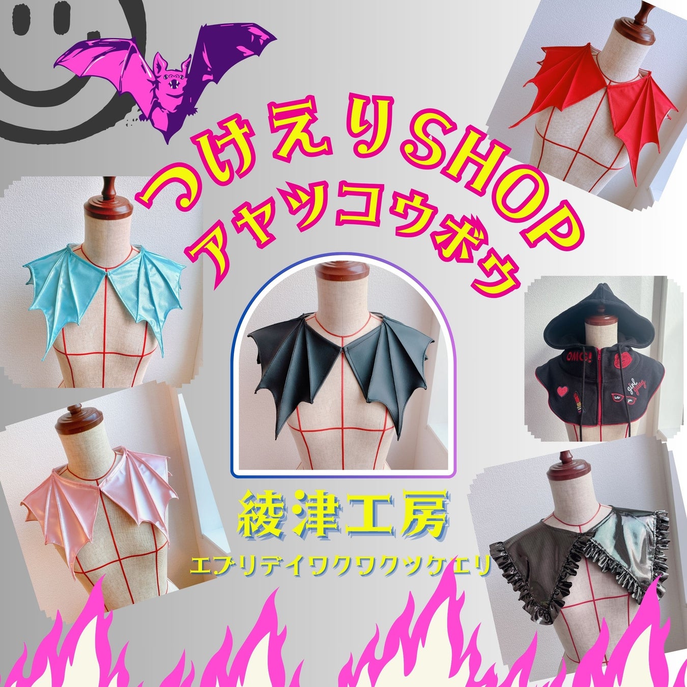 “エブリデイワクワクツケエリ”をコンセプトに、カラフルかつさまざまな素材でつけ襟を展開する原宿系つけ襟専門SHOP。つけ襟は、いつものお洋服にプラスするだけで、まるで新しい服を着ているかのように変身できるアイテム!ハロウィンにぴったりなフェイクレザーのコウモリつけ襟などもチェックしてください!