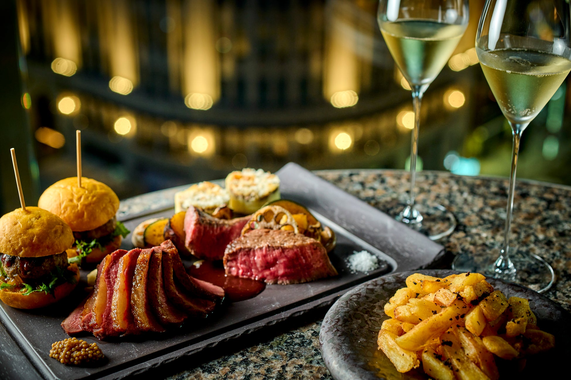 銀座CADRANでは、夏季からご好評いただいているサマーシャンパーニュプランの秋バージョンとしてミートプラッタープランの提供をスタートいたします。乾杯酒に合わせた前菜盛り合わせからスタートし、名物のポテトフライが秋のトリュフフレーバーになってお目見え。メインのプラッターには飛騨牛のグリルや鴨肉のロースト、鹿肉のミニバーガーなど肉肉しいメニューが盛り合わせに。ドリンクはスパークリング・赤・白がフリーフローになったワインビュッフェ、シャンパーニュのフリーフロープランをご用意。銀座らしい景観を望むテラス席でグラス片手に秋の夜長をお過ごしください。