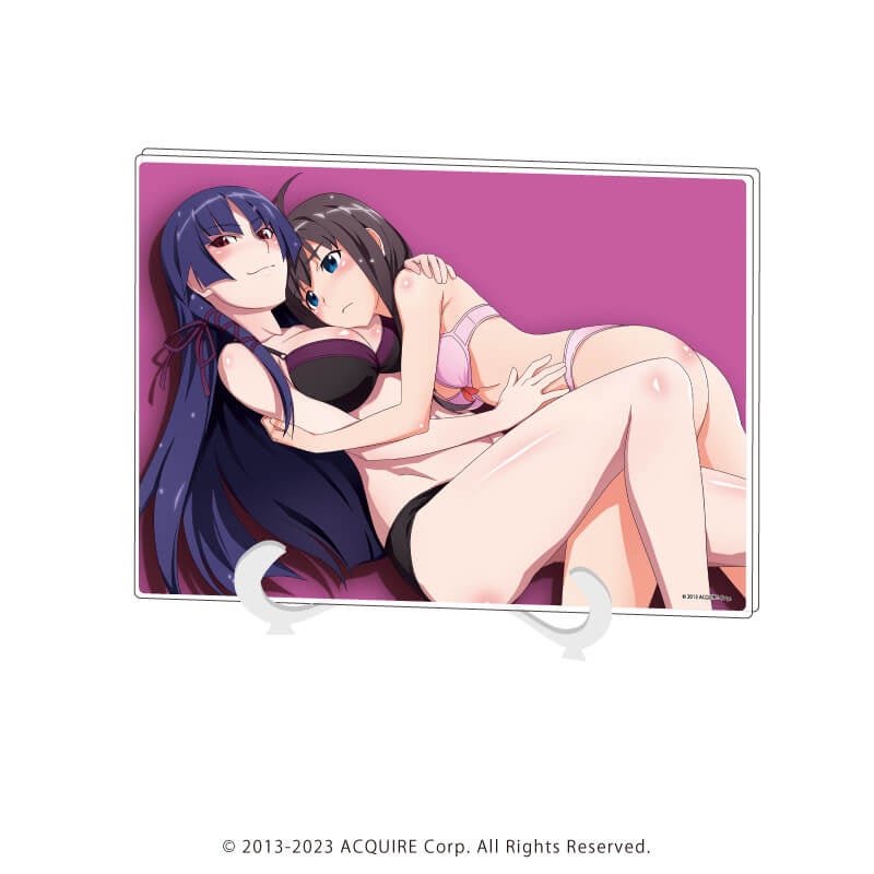 およそ縦15cm、横21cmのアクリルアートボードには、ナナと霞会志遠が薄着で寄り添うイラストを使用しました。互いに脚を絡めて、不安そうなナナと勝気な表情を浮かべる志遠のイラストは、まさにお色気大爆発です!