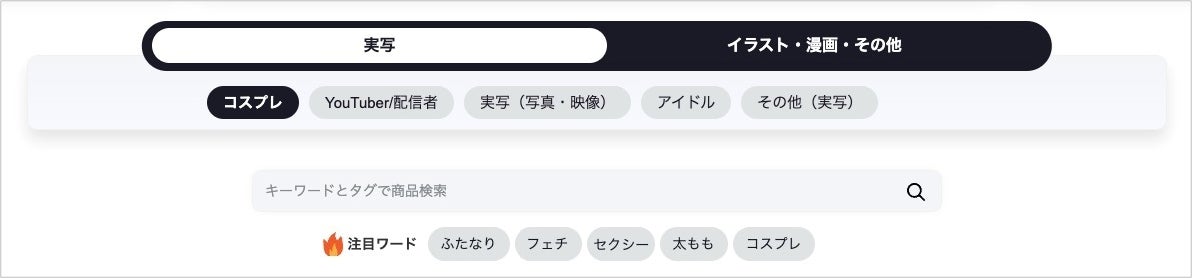ファンティア マーケットでは、ユーザーの好みに合う作品を自由に探せて見つけやすい機能を実装。