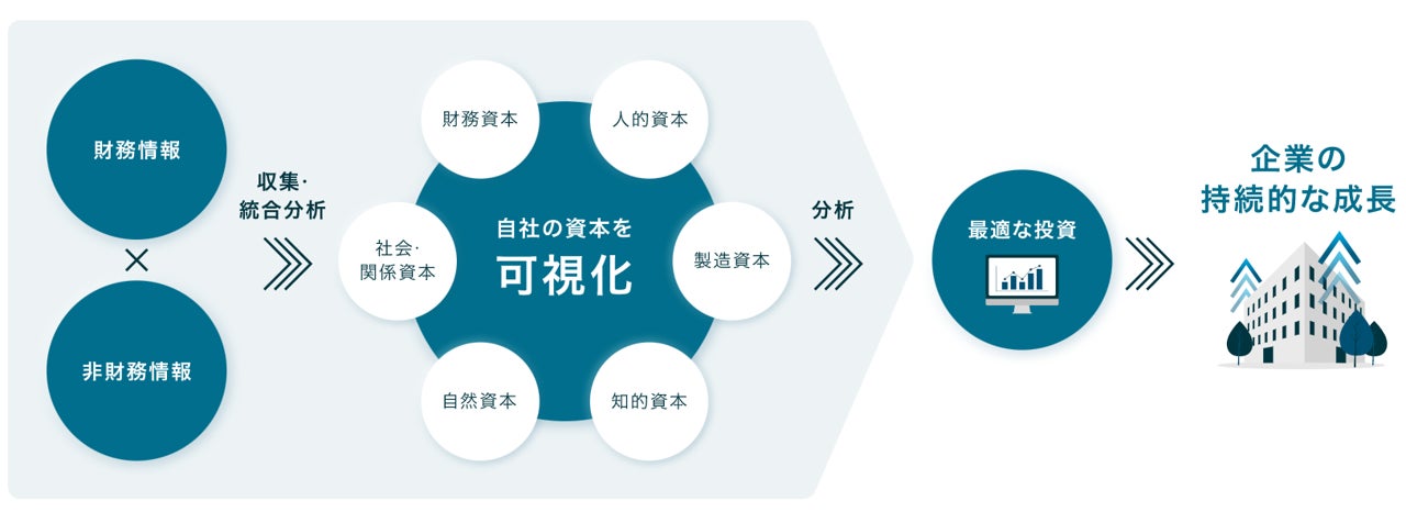 covalは、企業価値(Corporate Value)を向上させるために、財務情報と非財務情報を収集・統合し、資本を可視化・分析するプラットフォームです。人的資本経営にも対応した、複数データの収集や事業成長指標との相関性を分析する機能などを新たに開発しています。企業はcovalでデータの可視化と分析を行うことで、「可視化→戦略策定→投資」のサイクルをシステム化・仕組み化していくことができます。