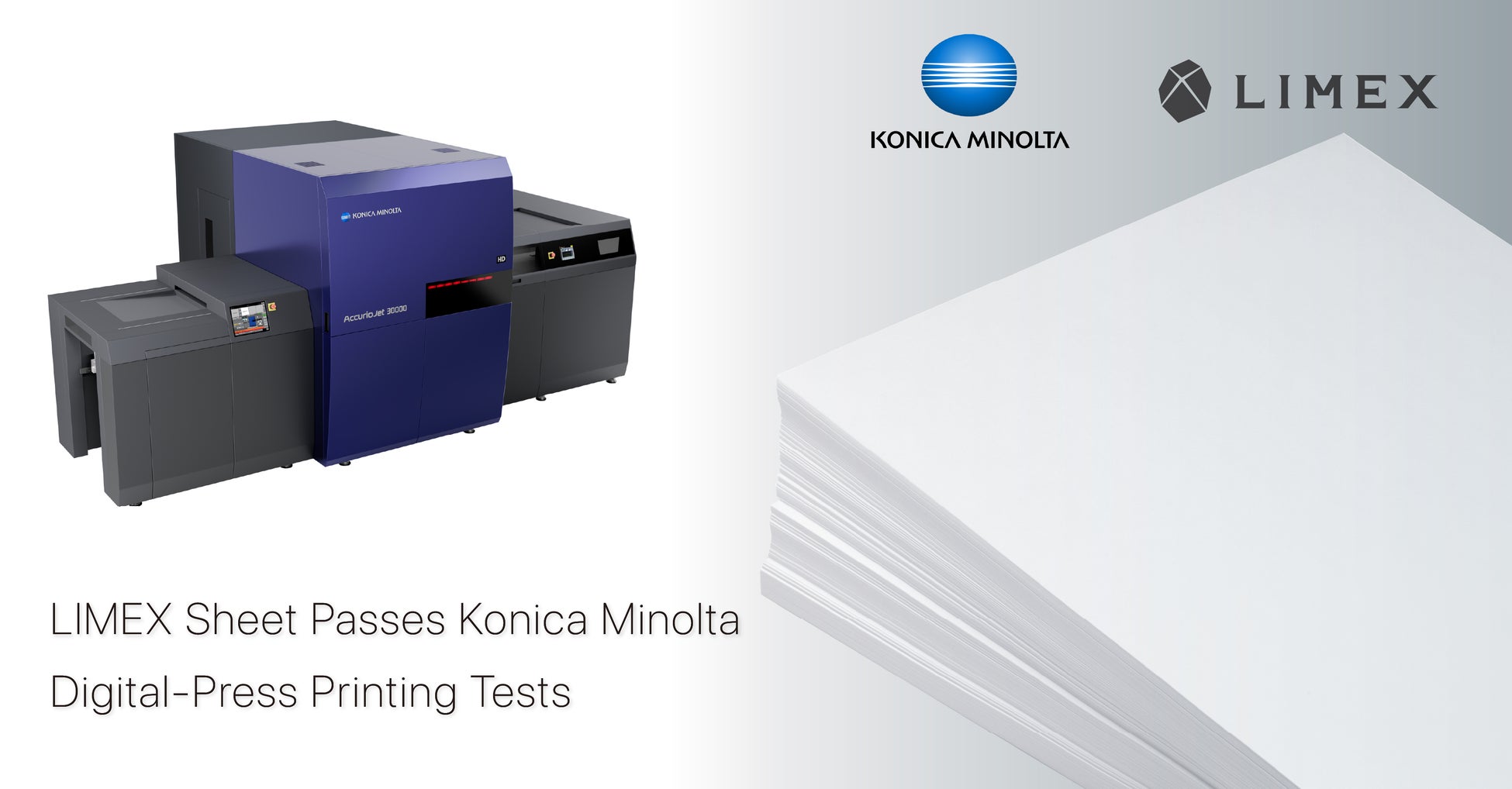 環境配慮型の「LIMEX Sheet」が、コニカミノルタのデジタル印刷機の印刷検証を通過