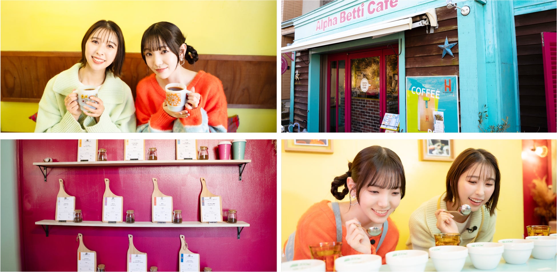 「Alpha Betti Cafe」は、世界各国から常に10種類のコーヒーを仕入れる、スペシャルティコーヒー専門店。今回は、神奈川県出身であるももいろクローバーZ 玉井詩織と私立恵比寿中学 桜井えまが店舗に訪問し、オリジナルブレンドコーヒー作りに挑戦しました。10種類のコーヒーを飲み比べする「カッピング」を通し、ブレンドする豆を選定。お二人の好みに合わせ、玉井さんは中深煎りのコク深いコーヒーに、桜井さんはフルーティーな飲みやすいコーヒーに仕上がりました。
