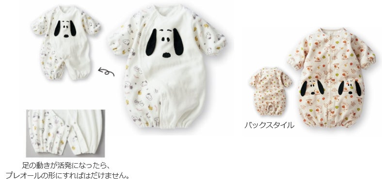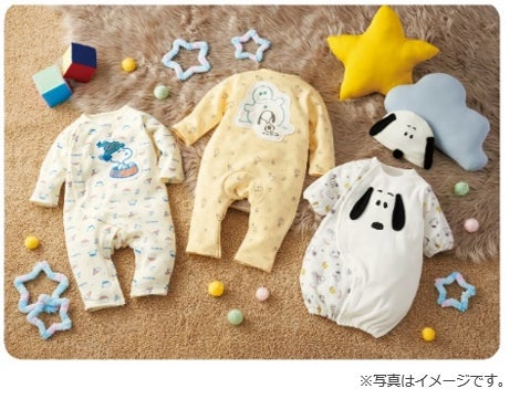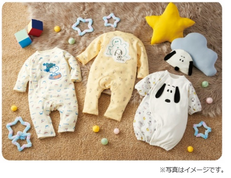 子育てを楽しく彩るアイテムとして、お洋服やお部屋グッズ、おもちゃや育児雑貨、プレゼントの商品など、スヌーピーフェアだけのかわいいコレクションを揃えました。その中から一部商品をご紹介いたします。