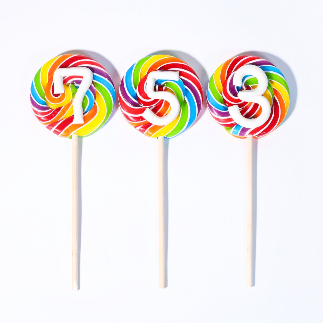 ■お祝いの撮影にぴったりな、「7」「5」「3」の数字を入れた「七五三ロリポップ」