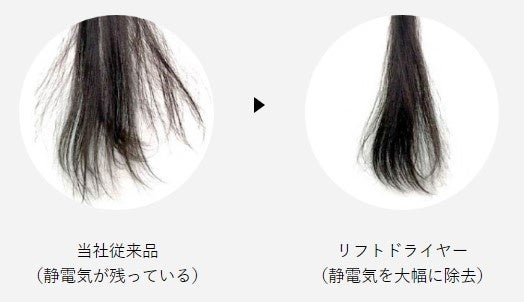 *4 【試験概要】帯電除去処理をした人毛サンプルを一定の条件下で帯電させた後に計測した静電気量とドライヤーの風を5秒間当て、使用前と同条件で測定した静電気量を比較した結果。※第三者機関調べ ※効果には個人差があります ※試験品:本製品・SHINYモード、当社従来品(UN-2771)・HIGHモード(N=6)