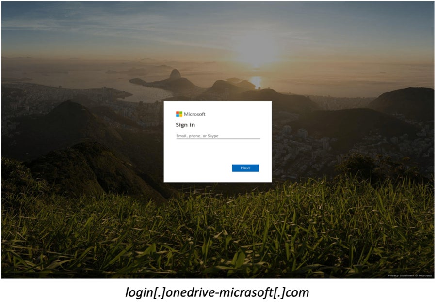 2025年第1四半期におけるもう1つの重大なフィッシング攻撃は、Microsoft OneDriveを装った偽のログインページで、ユーザーの認証情報を盗み取ろうとするものでした。サイバー犯罪者たちは、公式ログインページのドメインに酷似した、「login[.]onedrive-micrasoft[.]com」という偽のドメインを作成しました。攻撃者は、Microsoftのブランディングを模倣することでユーザーを欺き、電子メールアドレスやパスワードなどのログイン情報を入力させようとしていました。