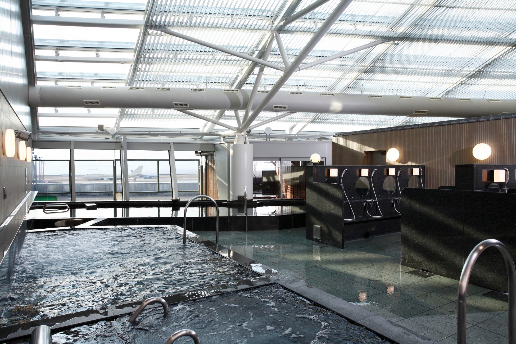 総合リラクゼーション施設「くつろぎ処」内にある日本初の飛行機を望める展望風呂「SOLA SPA 風の湯」。