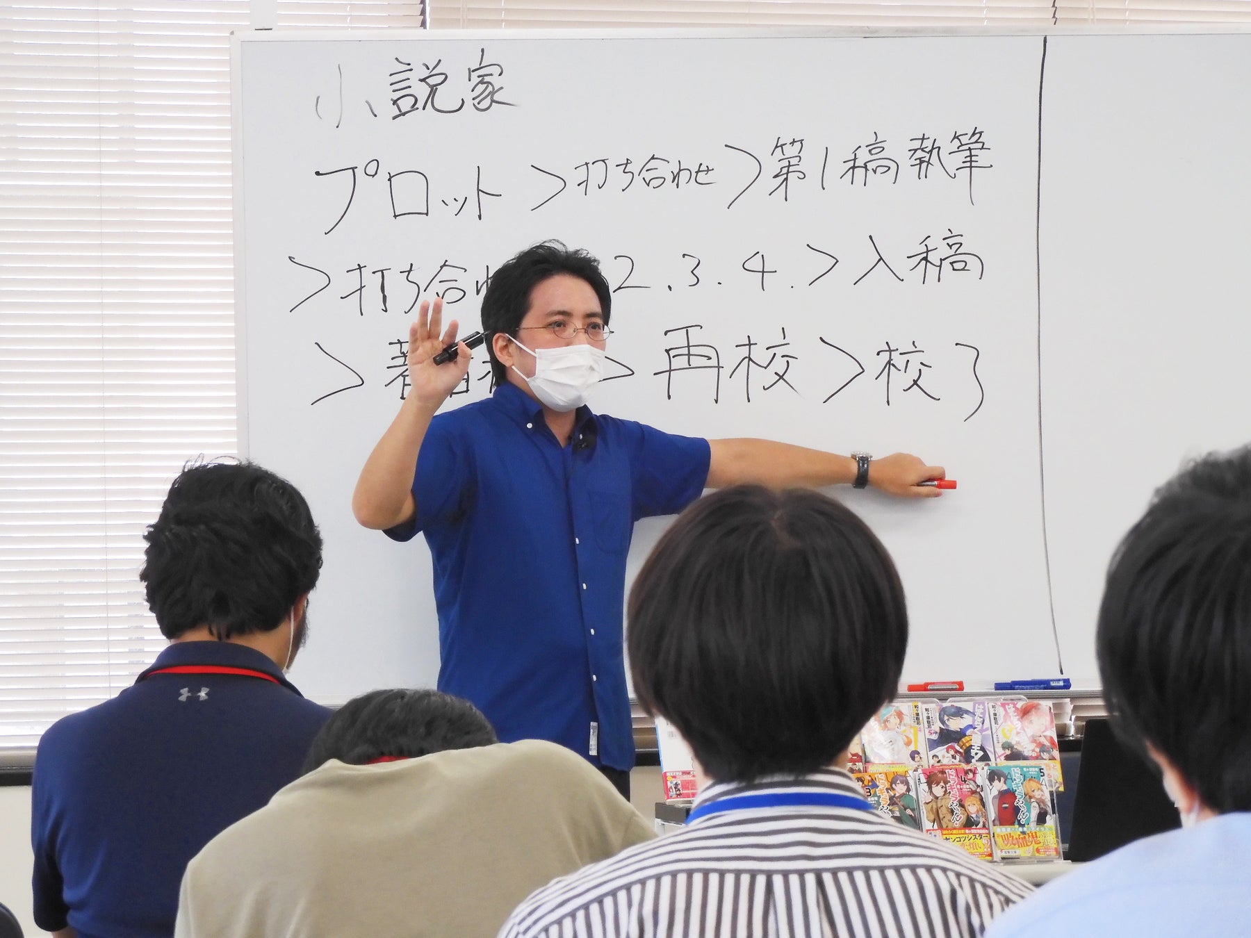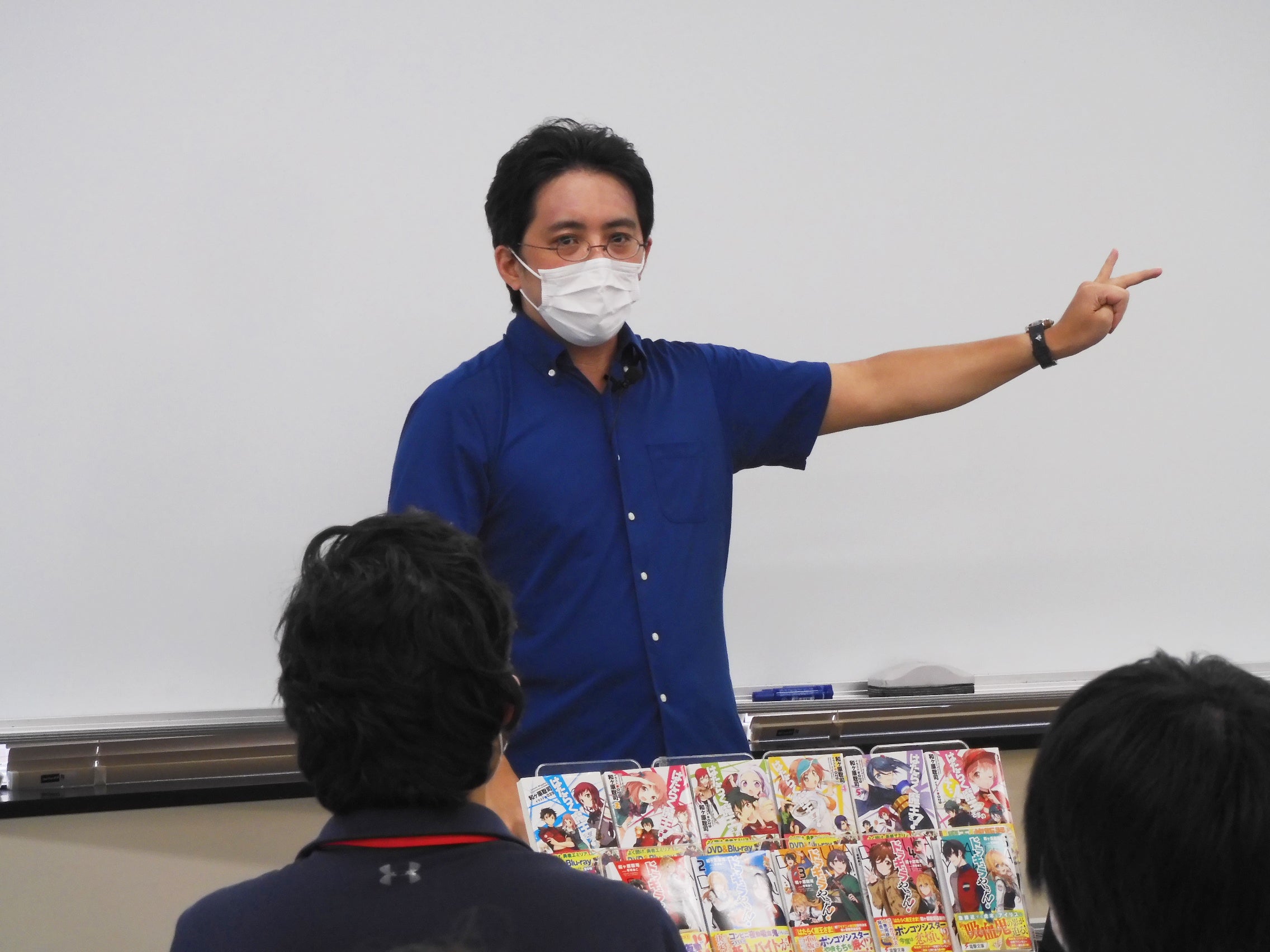 質疑応答の時間では「物語の設定の仕方」や「キャラクターの感情を上手に表現する方法」「行き詰った際のモチベーション回復術」、そして「和ヶ原先生おすすめの作品」など、次々と手が挙がる学生からの質問に大忙しの和ヶ原先生でしたが、一つひとつ分かりやすく答えてくださいました。