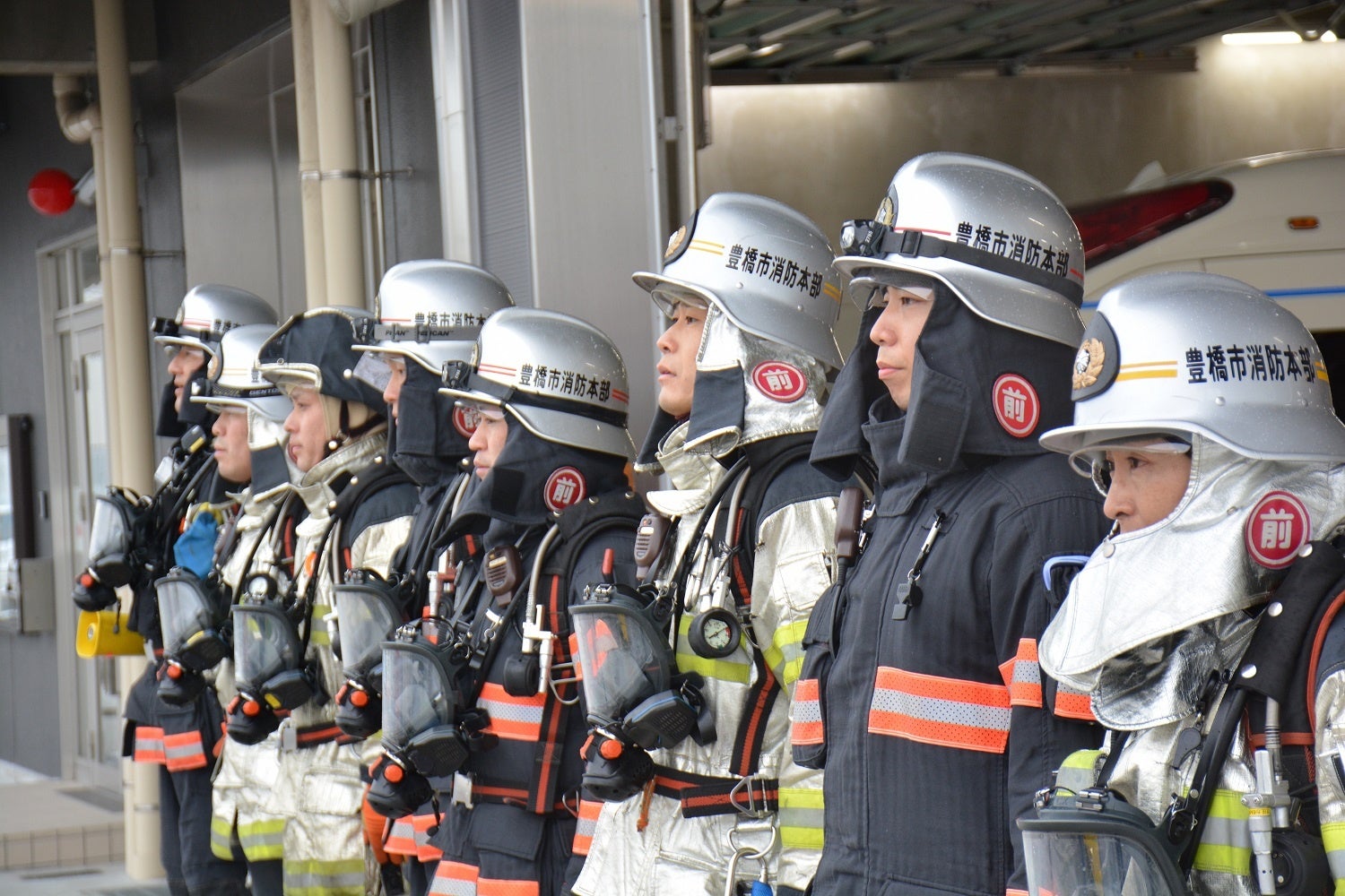 愛知県豊橋市の新春恒例の消防出初式は2024年も、中心街にある豊橋市まちなか広場と駅前大通を会場に開催されます。豊橋名物、路面電車が走る駅前大通の一部に多くの消防車が並ぶ光景は壮観です。ぜひ観覧に来てください!