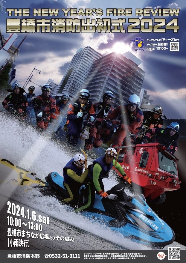 消防出初式は消防関係者が一堂に集い、市民とともに無火災、無災害を祈念する年頭行事です。2023年、豊橋の出初式は約30年ぶりに市の中心街、いわゆる「まちなか」に戻ってきました。
