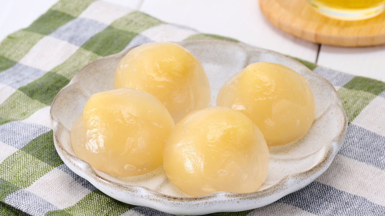 なめらかな葛まんじゅうの食感と、すきとおって見える黄色い栗あんが涼やかな印象の和菓子です。冷やすと一層美味しくお召し上がりいただけます。4個入り。