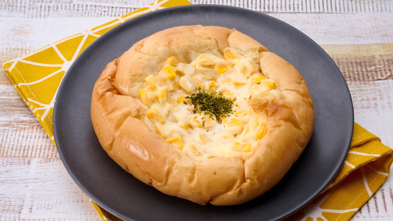 コーンマヨネーズをたっぷりと絞りました。ふんわりとしたパンと、シャキシャキとした、たっぷりコーンの食感をお楽しみいただけます
