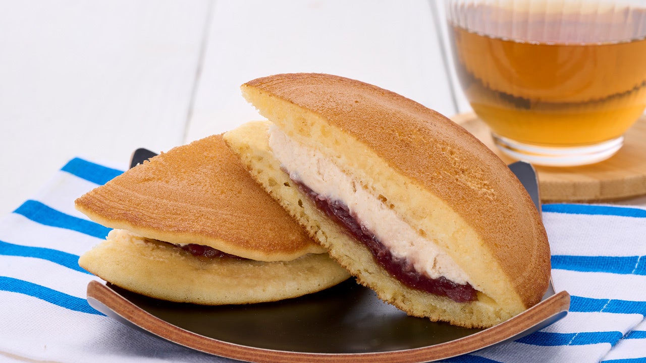 ふんわり食感のどら焼きで、小豆の風味豊かなつぶあんと、香ばしいきなこホイップをサンドしました。