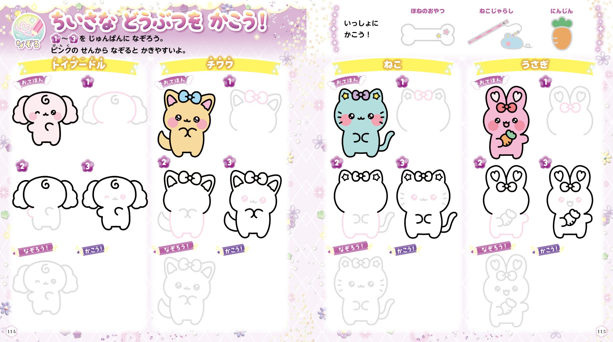 線をなぞり、形をまねし、少しずつ描き足していくことで、自然と「自分だけのかわいいイラスト」が描けるようになります。