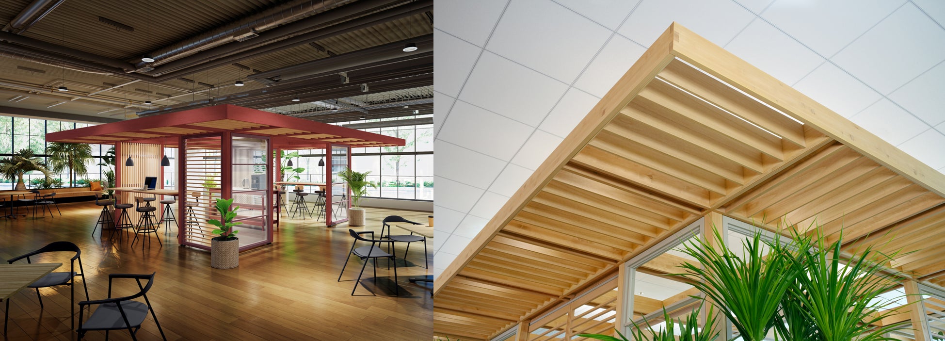 自然に人が集い、つながりを育む木製フレームシステムです。居心地の良い共創空間を提供します。