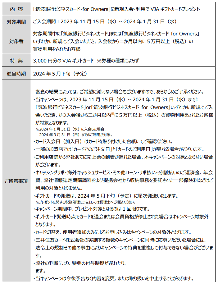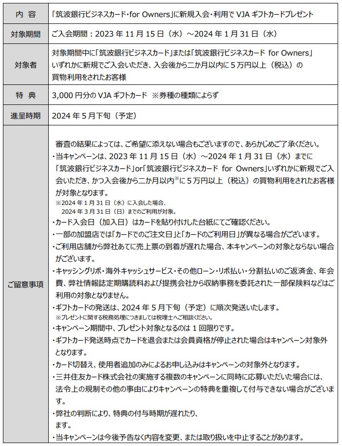 ※1 資料請求:https://www.smbc-card.com/hojin/lineup/tsukuba.jsp