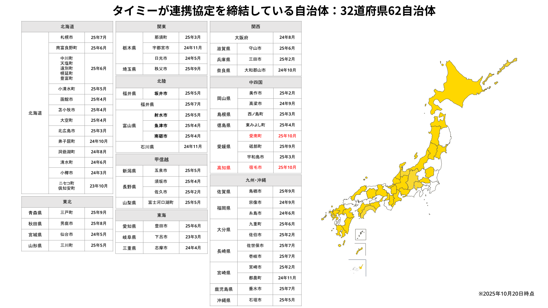 当社はこれまで31道府県・60自治体と連携協定を締結しており、今回の愛南町と宿毛市との連携は32道府県・62自治体目となります(※3)。