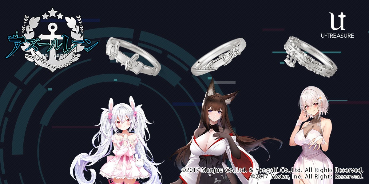 大人のための本格的なキャラクタージュエリーを扱うユートレジャー(東京都豊島区:代表取締役:伊藤 崇史)は、スマートフォン向けゲームアプリ「アズールレーン」のモチーフリング3種類を3月1日(火)~3月29日(火)の期間限定で予約受付を行ないます。このたびの新作は、天城、シリアス、ラフィー3名それぞれの衣装の装飾やデザイン、そして、キャラクターのイメージと魅力を表現したリング(指輪)です。ご予約特典として、ご予約されたリング(指輪)のキャラクターの描き起こしアクリルスタンドを商品1点につき、1つプレゼントします。ユートレジャーコンセプトストア池袋、ユートレジャーオンラインショップにて取り扱います。
