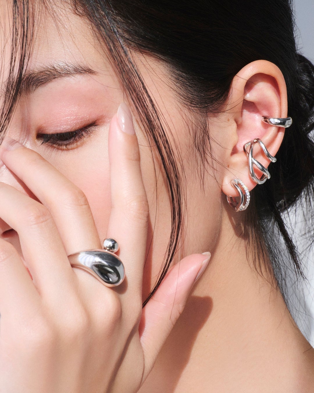 柔らかくオーガニックなフォルムがエレガントなピアスやドロップフォルムのリングなど、シルバーカラーの凛とした輝きが魅力的なアイテムを揃えました。