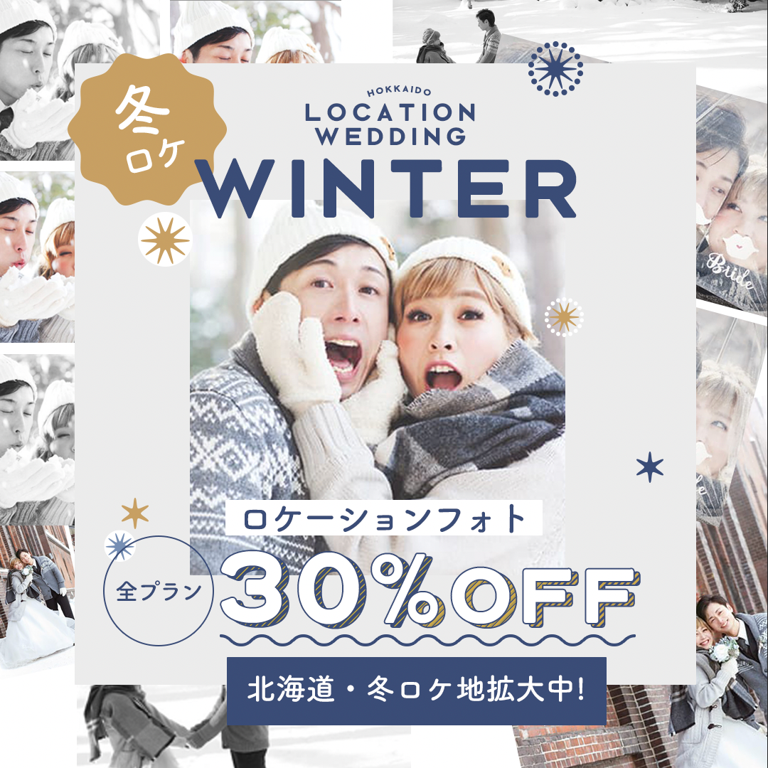 北海道をまるごと体感!冬のロケーションフォトウェディング30%OFFキャンペーンがスタートします。