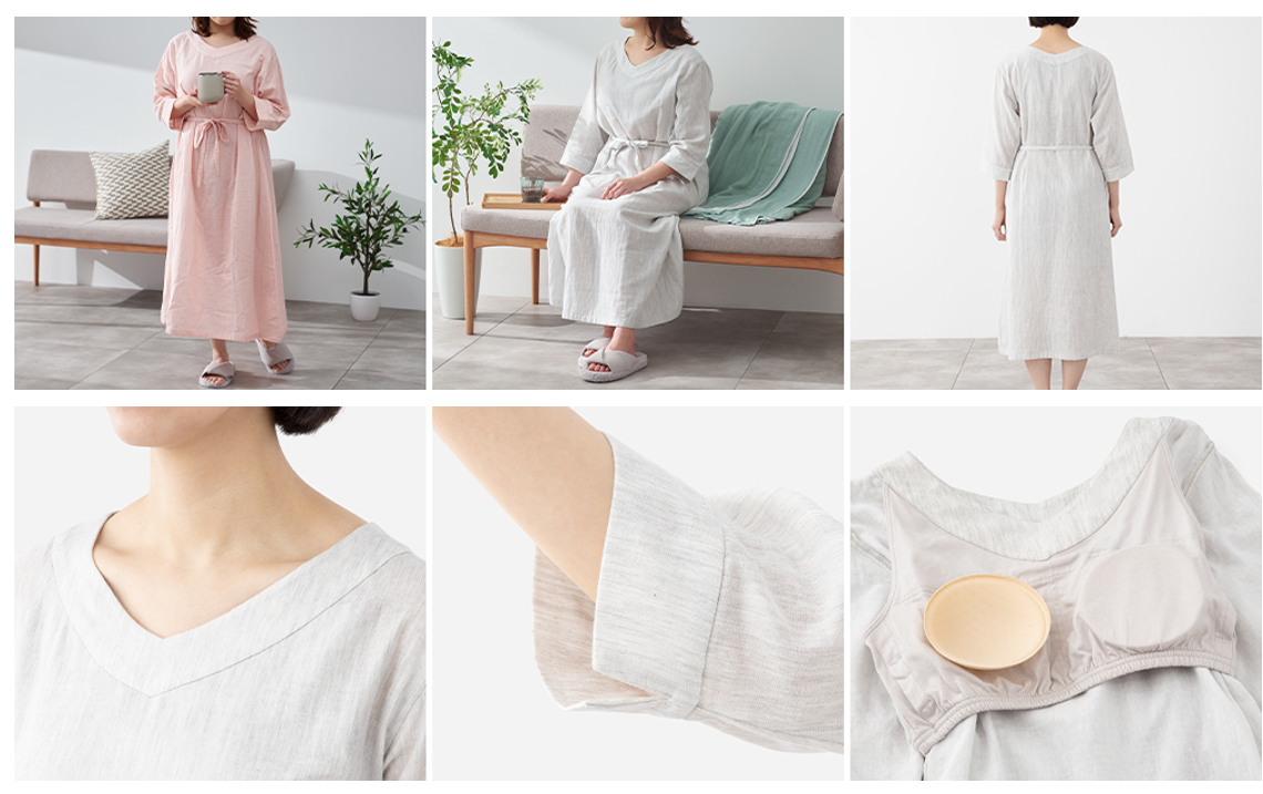 綿を使うことで、肌触りはもちろん通気性も抜群に仕上げました。バストトップを隠すパッド付きで、家中だけでなく家外へのゴミ捨てや急な宅急便の対応などにも使えるのがポイント。取り外し可能なパッドは、締め付けがなく優しいつけ心地なので、ストレスなくお使いいただけます。